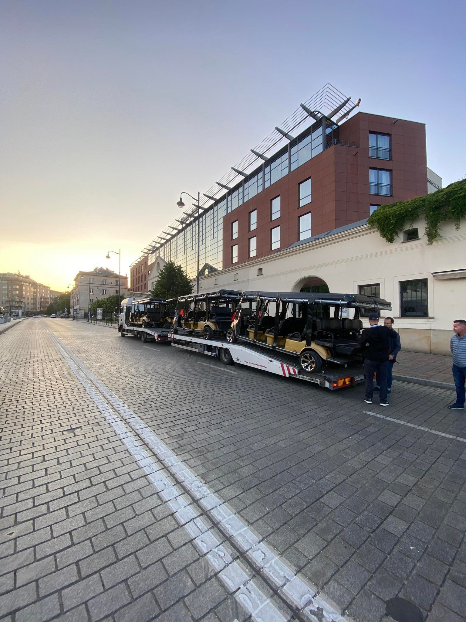 15 golf carts were transported from Krakow to Karsy for 4 days total.